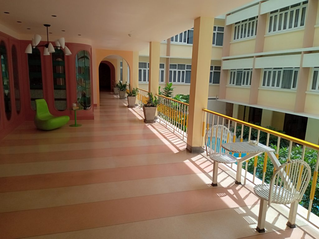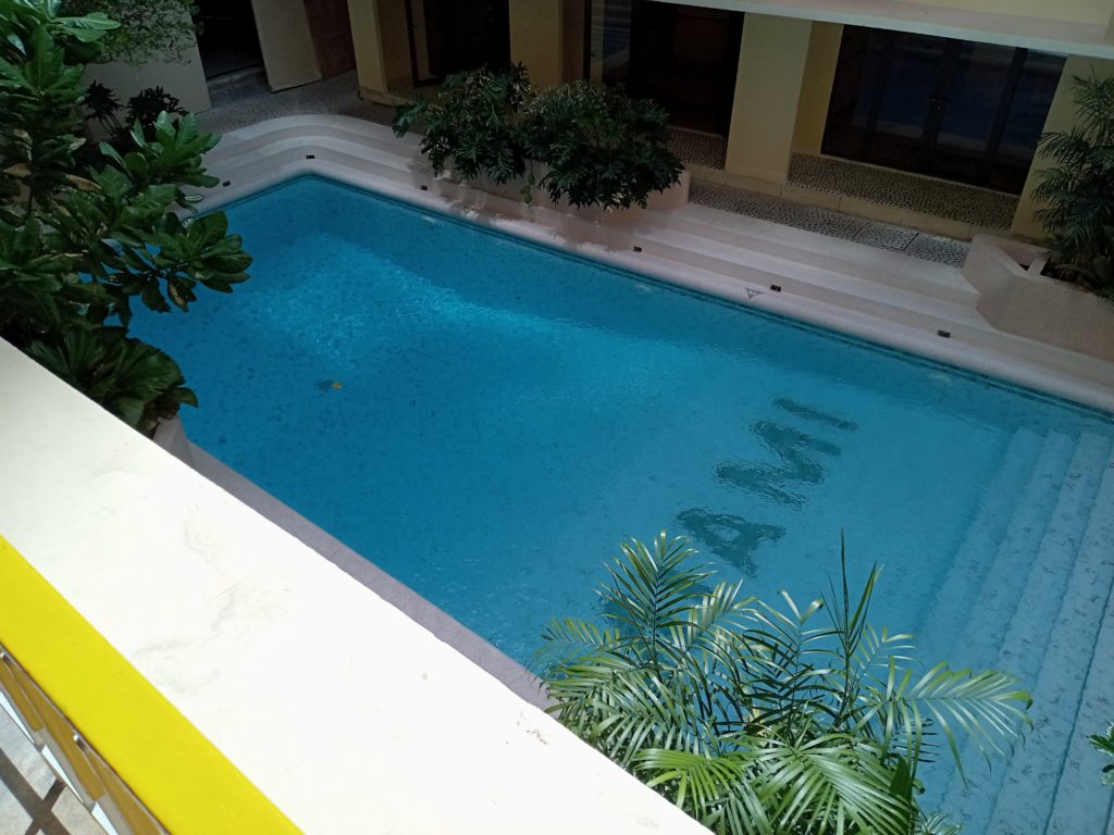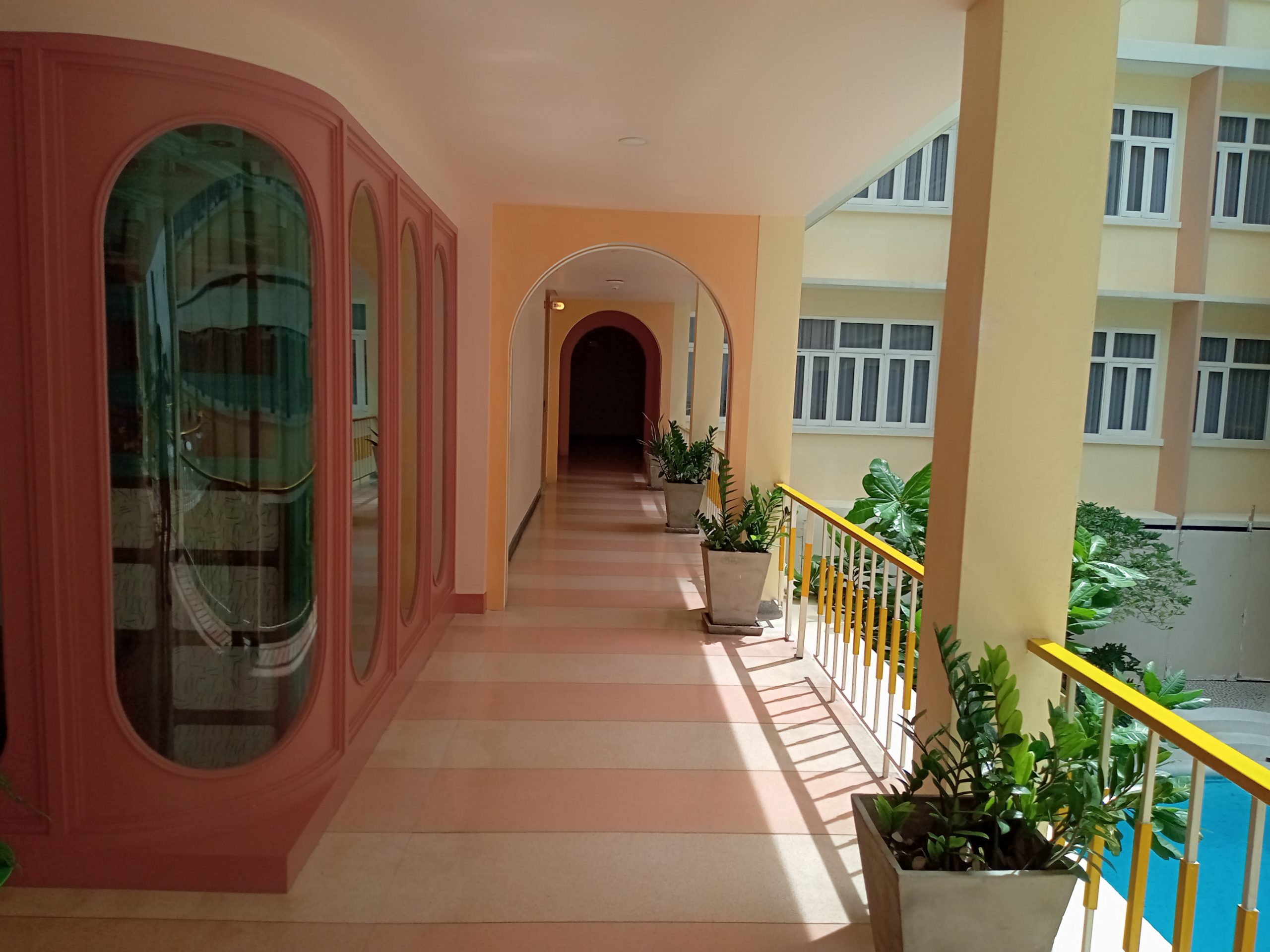 コの字型にプールを客室の建物が囲んだリゾートタイプの作りです。バルコニー部分はレトロな雰囲気にあふれています。改装以前の写真を見たことがありますが、客室の窓の外にはエアコンの室外機が雑然と並んでいてきれいとは言えない様子でした。