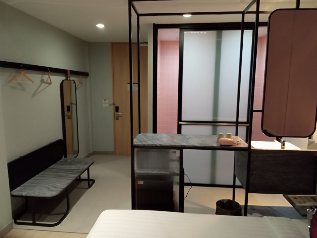 トイレとバスルームの扉が引き戸一枚でトイレ側を閉めたらバスルームが全開、逆にするとトイレ側が全開という形になっていました。一人で泊っている分にはいいですが、パートナーや友達とシェアする場合は問題でしょう。